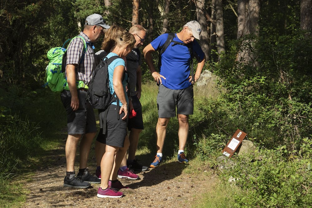 Beantworten Sie knifflige und unterhaltsame Fragen und genießen Sie eine wunderschöne Wanderung entlang des malerischen „Weißen Weges“ (Vita leden) im Naturschutzgebiet Ramsvikslandet. Sie wandern über Granitfelsen, durch Waldabschnitte und erleben fantastische Meerblicke.